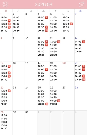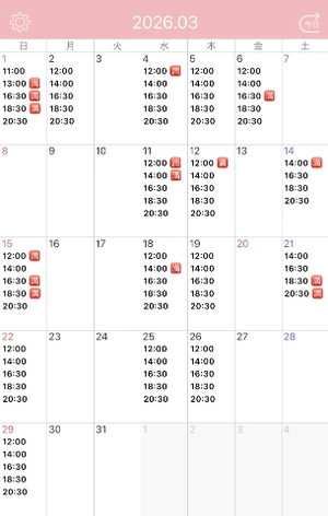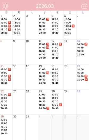 3月のシフトが決定しましたので