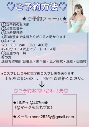 20日10:00/12:30/15:0021日13:30/16:00/18:30⬆️のお時間でめめちゃんとの二輪車が可能なので、ぜひお問い合わせくださいもちろん二輪車も姫予約のご予約ですと、コスプレのご指定可能!! もちろん他の女の子とも二輪車プレイは可能なので、もしご興味のある方いたらお気軽にお問い合わせください!めめちゃんとの二輪車のスケジュール️も載せておきますね