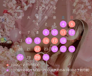 お休みの日も姫予約のみ出れる時間帯もあるので、せまひお問い合わせください。4月